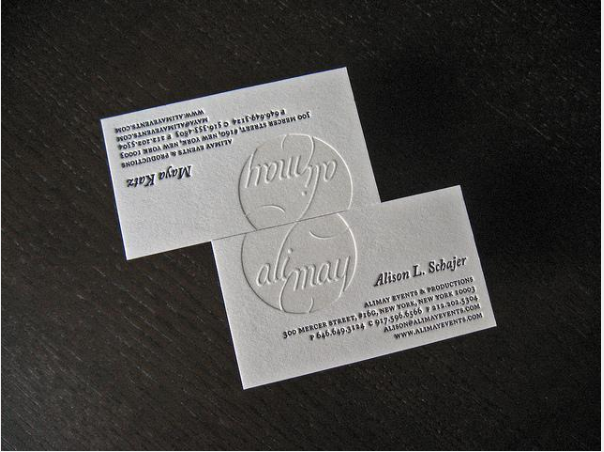 凹凸壓印習稱“凹凸印刷”、“軋凹凸”或“壓凸印”,該工藝**的特色是不用油墨,而是將圖案雕刻在金屬版上,或凹版或凸版,像打鋼印一樣,給凹凸版以機械壓力,單純利用壓力在已經印好的彩色印刷品或空白的紙上壓出凹凸圖形和花紋。凹凸名片的優點是質感強烈,有浮雕的效果。