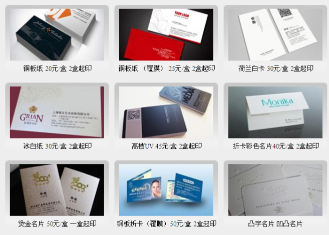 300克銅版紙彩色名片印刷價格表